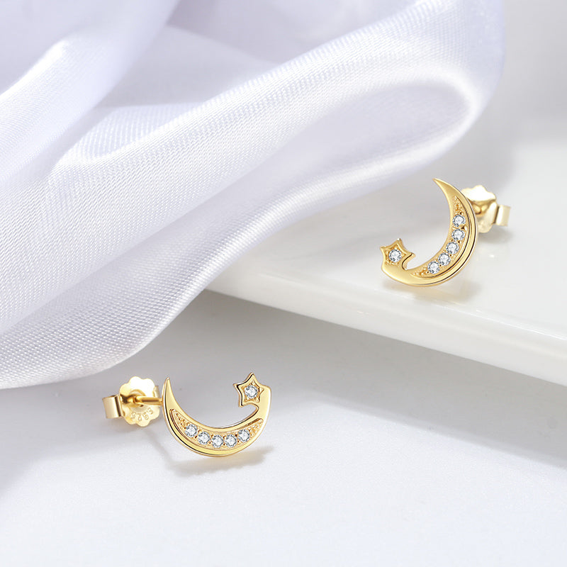 Cercei din argint placat cu aur în formă de lună și stea - C51
