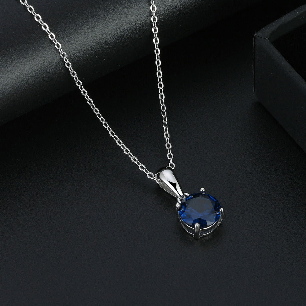 Colier din argint cu pandantiv rotund și zirconiu albastru intens - L14